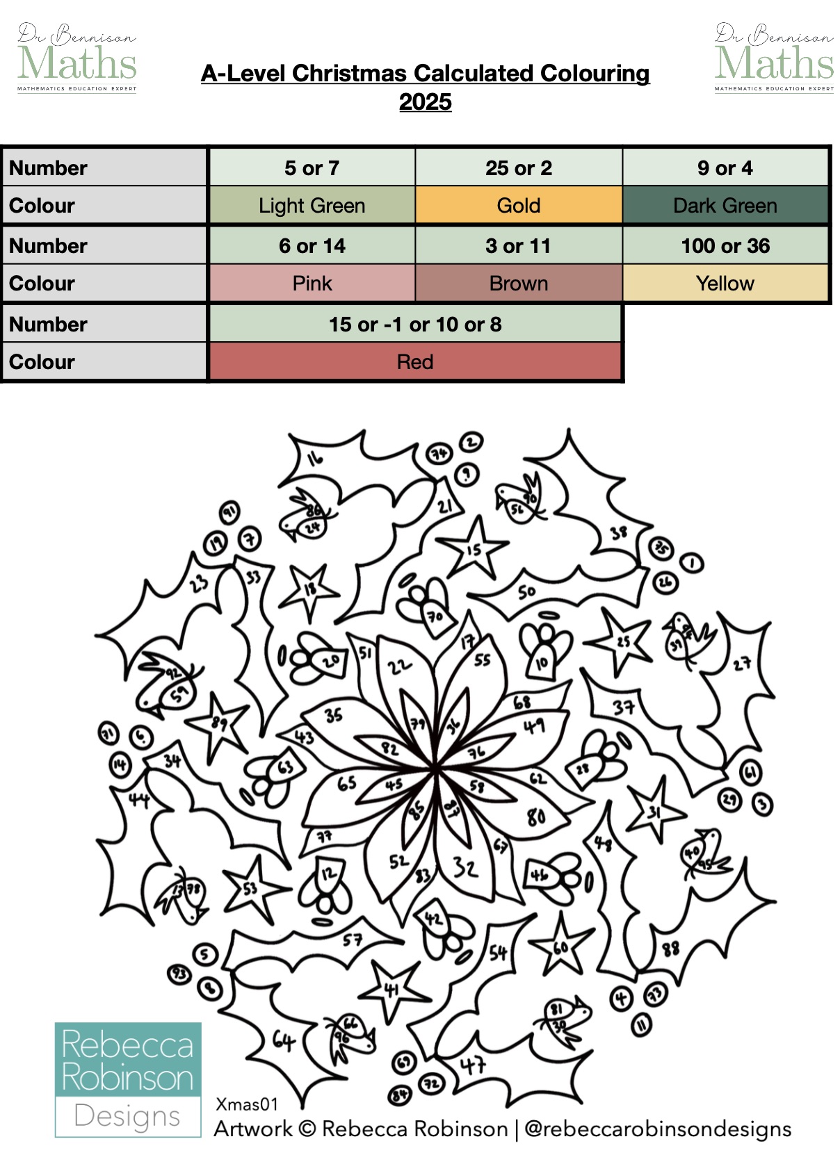 Please see below for a link to my A-Level Christmas Calculated Colouring for 2025.